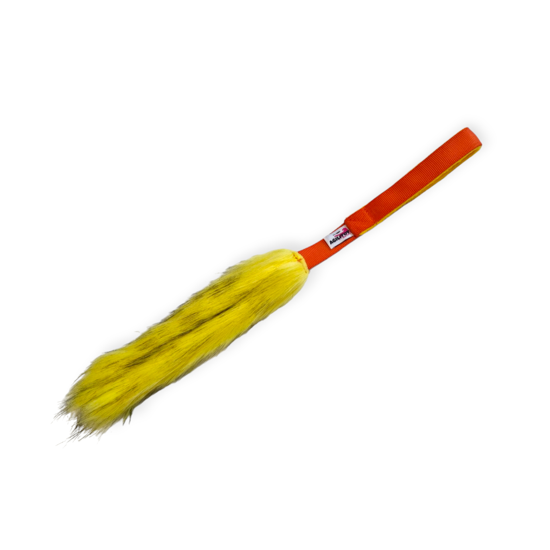 This Agilitoy has a faux fur covered bite area and a short handle.
