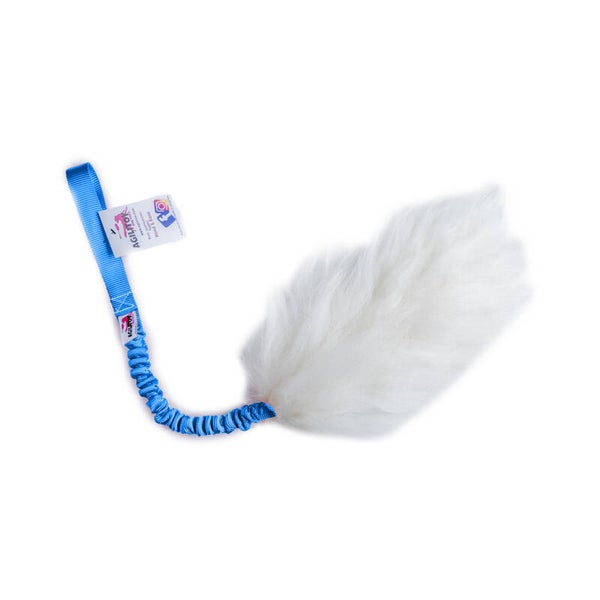 This Agilitoy has a sheepskin-covered bite-area and a long handle with bungee.