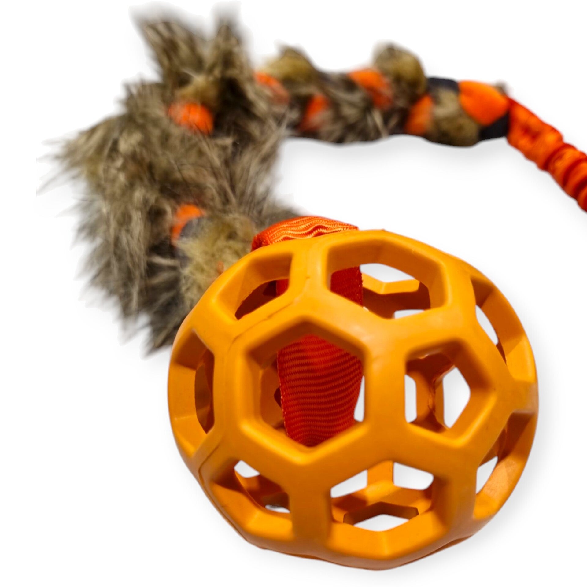 This special Agilitoy has a braided structure consisting of fleece and faux fur, with a open ball at the end of the braid. Because the faux fur is braided along, it will wear out less quickly than another toy with uncoverd faux fur. The inside of the handle contains a liner of soft fleece material.